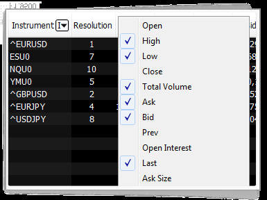 See the big pictureYou can use different resolutions in different rows. For example, you could have the same symbol in tick, minute and day resolutions to monitor different trends. For even more flexibility each row can have its own session template and a unique number of bars a study will reference.